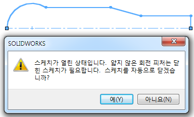 필요없는 스케치는 잘라내기 하고 스케치 종료 후 회전보스를 눌러준다.