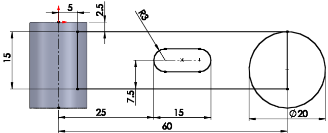 오른쪽 원 모양에서 지름 15인 원으로 2.5만큼 위로 돌출시킨다.