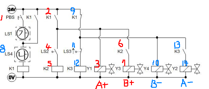 실린더 A가 전진하여 LS2의 접점이 붙어 K2릴레이가 여자된다.
