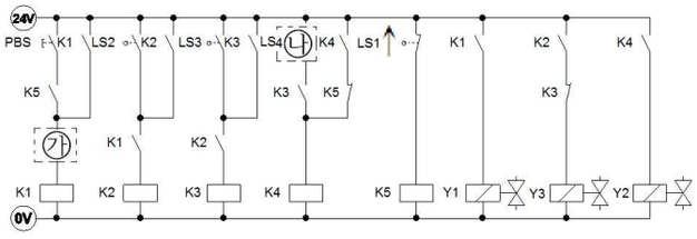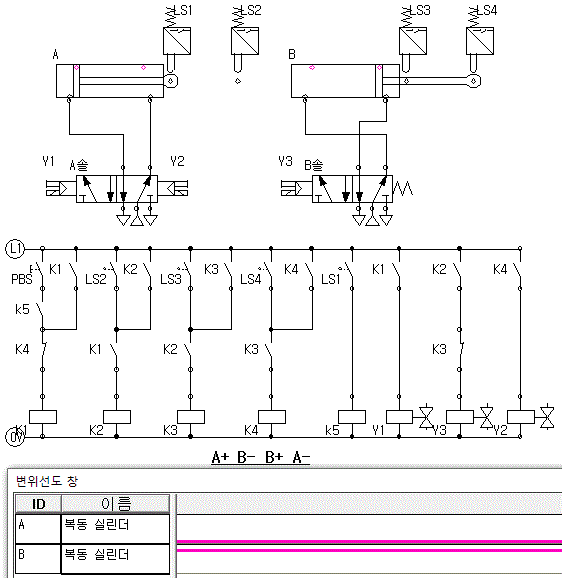 실린더 B는 초기에 전진하여 있고 동작스위치(PBS) On-Off하면