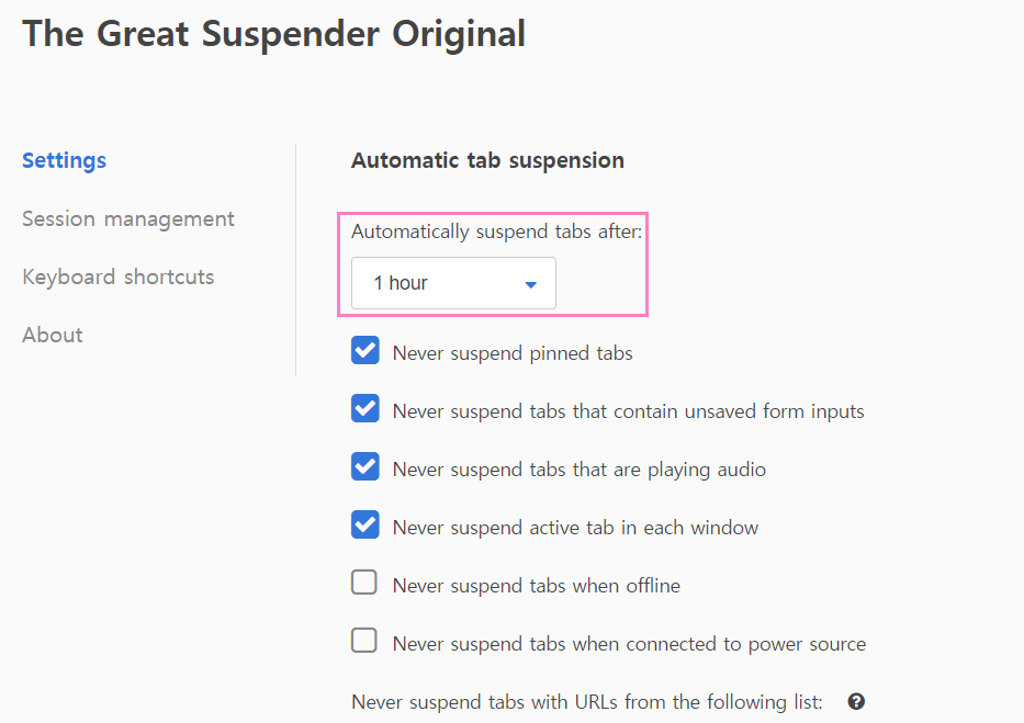 2. The Great Suspender Extension 설정