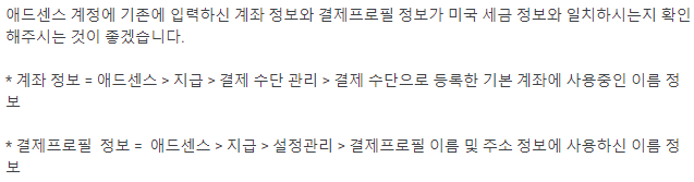 구글광고 수익이 한국 이외에 미국이나 전 세계적으로 발생할 수 있습니다. 이 광고 수익 중 미국에서 발생한 부분에 있어서는 세금을 원청징수(30%)를 떼고 지급하겠다는 말입니다. 필자와 같이 거의 국내에서 수익이 발생하는 경우는 미국에서 발생하는 세금이 없을 수 있습니다. 그러나 세금 폭탄을 맞지 않고 한국 세율의 적용을 받기 위해서는 '미국 세금 정보' 입력(인증)을 해 주어야 합니다.