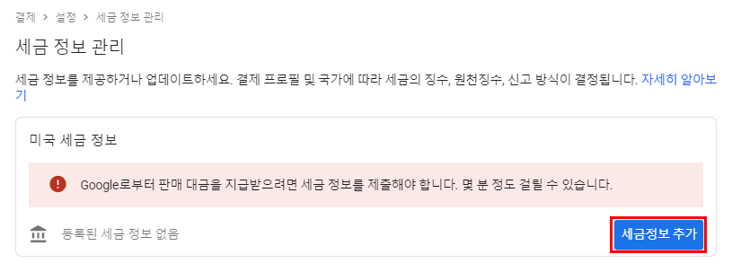'세금정보관리'에서 세금정보 추가하기를 눌러줍니다.