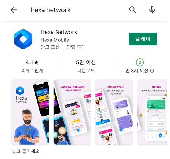 1. 구글 플레이스토어에서 Hexa Network 앱을 다운로드 받습니다.
