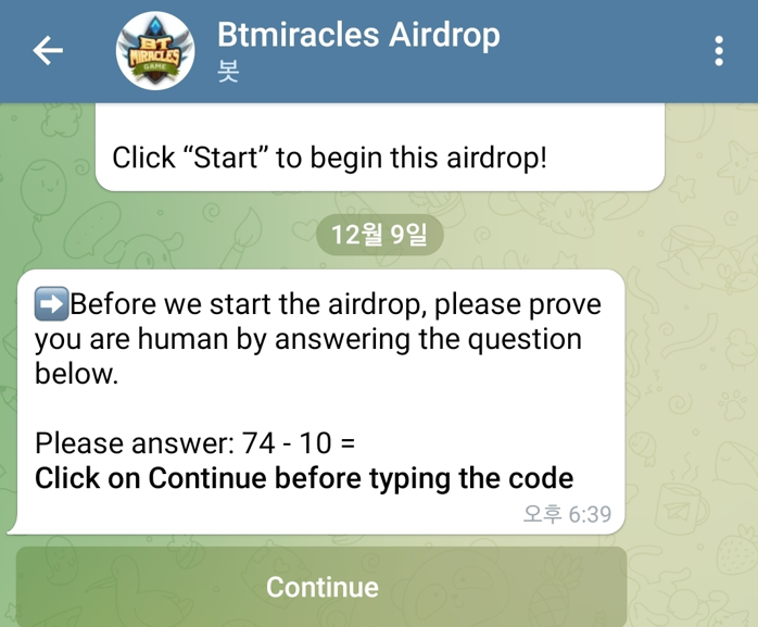 가입경로(텔레그램) : https://t.me/BtmiraclesAirdropbot?start=1663063886