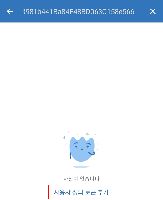 앱이 실행되면 토큰 검색란에 복사한 계약주소를 입력합니다. 그리고 '사용자 정의 토큰 추가'를 클릭합니다.