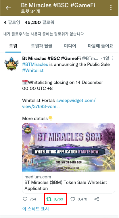 트위터 팔로윙을 하고 리트윗을 해줍니다.