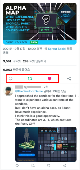 1. 트위터에 샌드박스 관련 게시물로 이동한다.