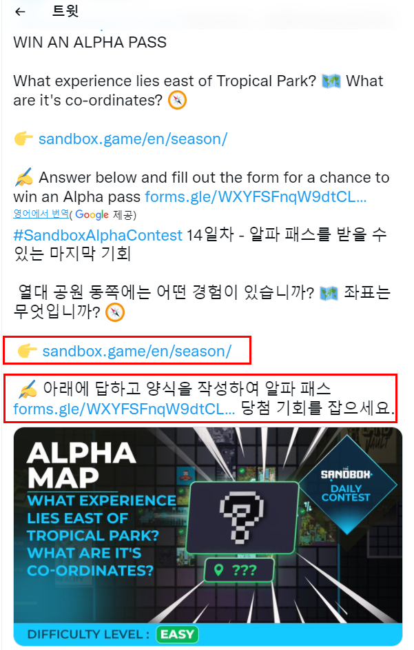 “#SandboxAlphaContest DAY #14 - LAST CHANCE TO WIN AN ALPHA PASS What experience lies east of Tropical Park? 🗺️ What are it's co-ordinates? 🧭 👉 https://t.co/sMo6BNzpDr ✍️ Answer below and fill out the form for a chance to win an Alpha pass