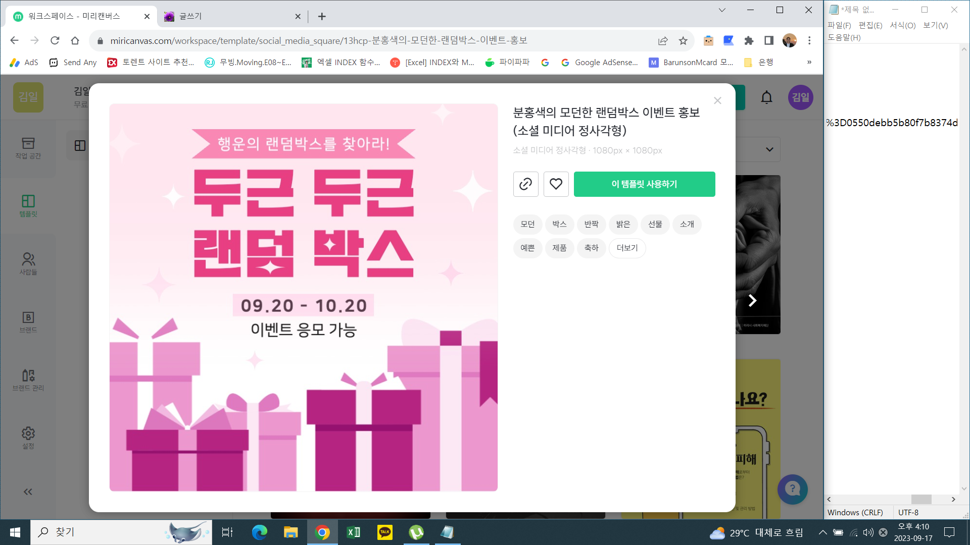 홈 - 템플릿 - 선택해서 만든다.