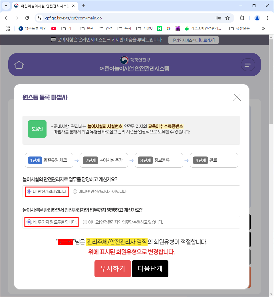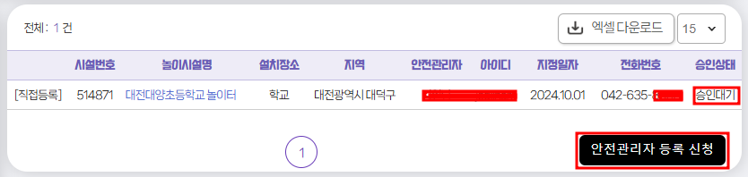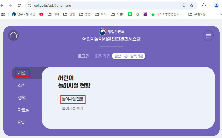 3. '어린이 놀이시설 안전관리시스템' 사이트에 들어가서 안전관리자 등록을 합니다.