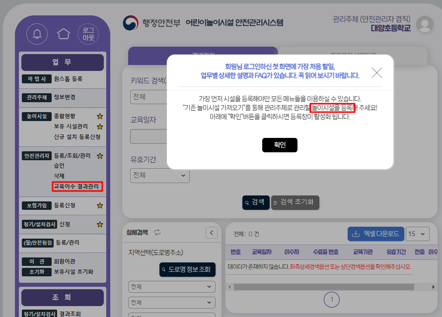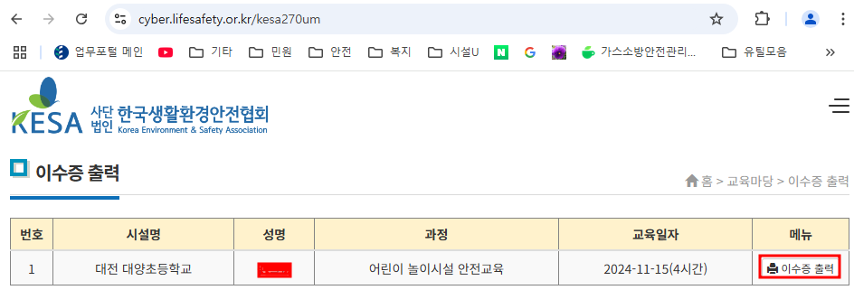 1. 어린이 놀이시설 안전교육(인터넷)을 이수합니다.