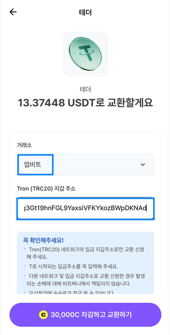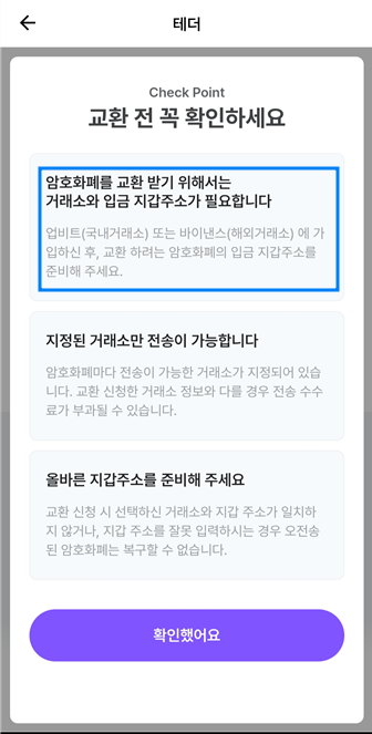 포인트를 테더와 교환하기 위해서는