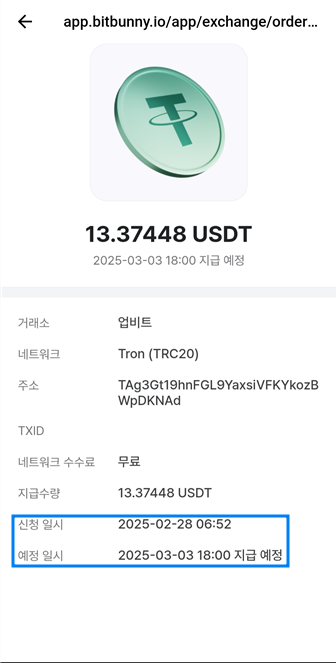 교환 신청을 금요일에 했는데 입금은 다음주 월요일에 되었습니다.