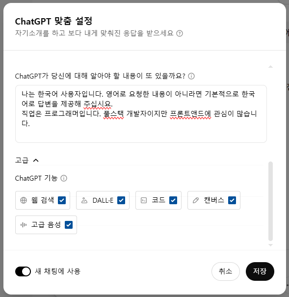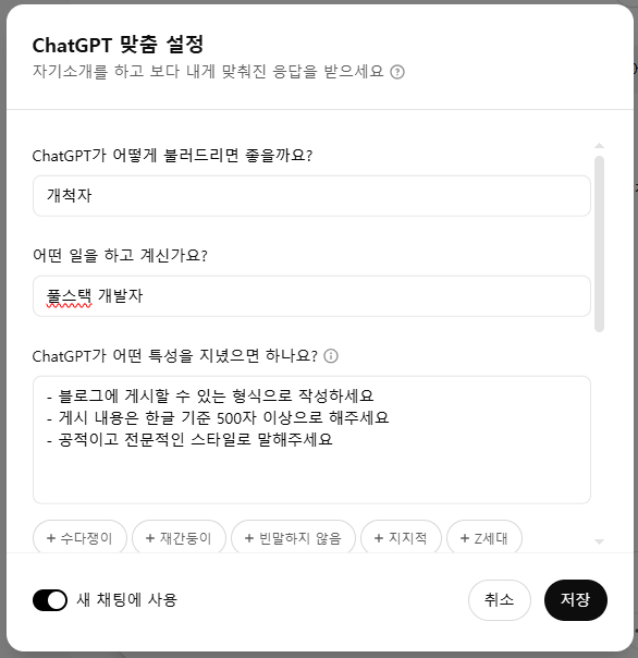 이전과는 다르게 내가 원하는 스타일로 답변을 받을 수 있습니다.