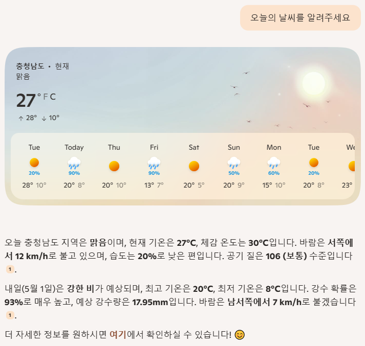 비로그인 상태에서 오늘의 날씨에 대해 질문해 보겠습니다.