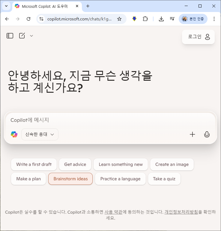 이번에는 또 다른 ChatGPT인 마이크로스프트 코파일럿을 검색해서 실행해보겠습니다.