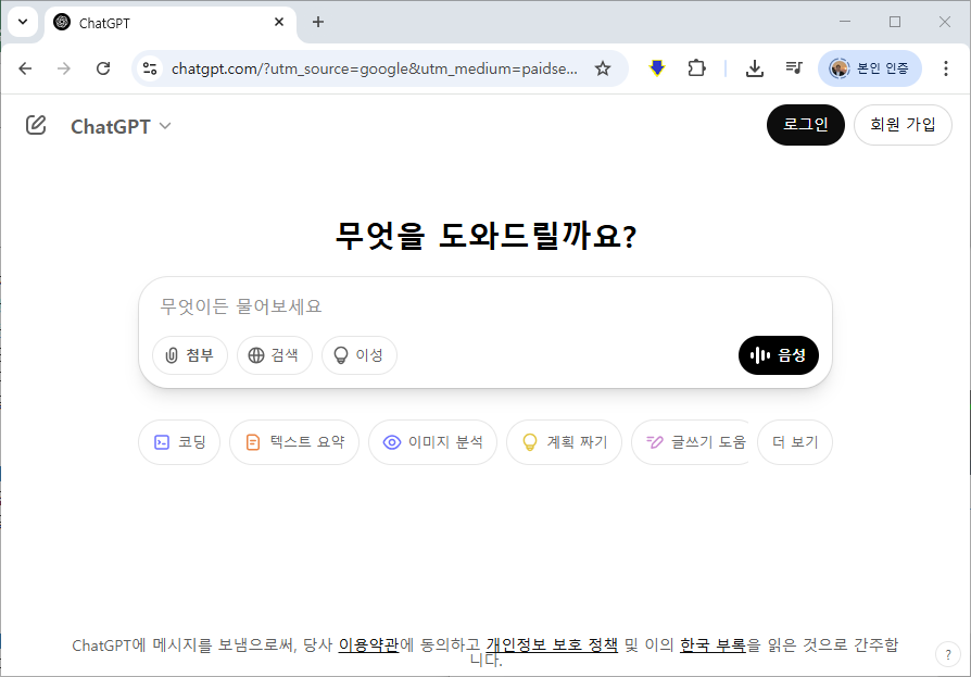 ChatGPT 사이트로 이동합니다. 💨💨💨