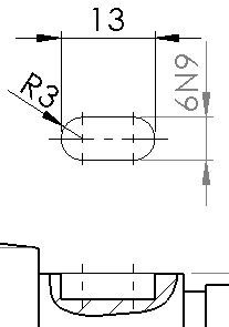 만들어진 기준면에 키 홈을 스케치하고 돌출컷을 해준다.
