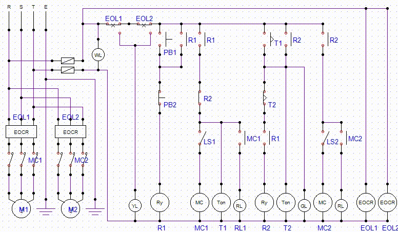 LS2를 누르면 MC2가 여자되어 RL2가 점등되면서 전동기 M2가 동작한다.