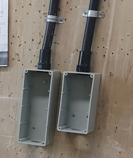 3. 배치도에서 선의 끝부분에 컨트롤 박스(3곳)와 단자대(5곳)를 설치한다.
