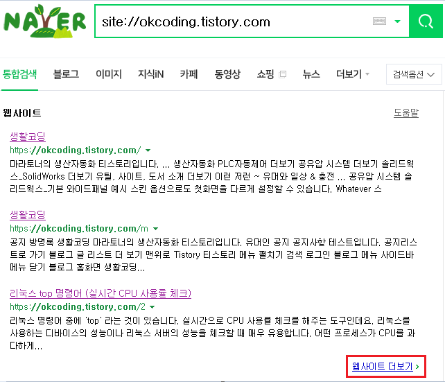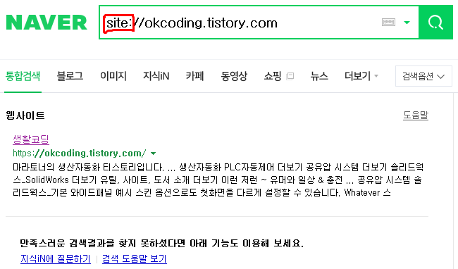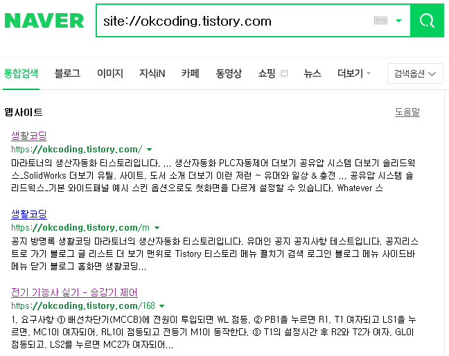 네이버 검색창에 'site://okcoding.tistory.com'을 입력해 본다
