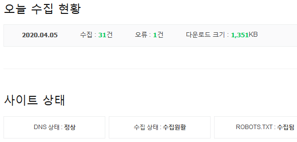 '오늘 수집 현황'을 보면 '수집 : 0건'이라고 되어 있다.