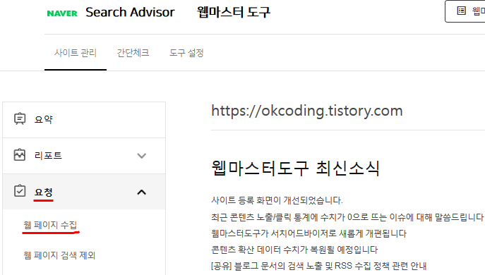2. 네이버 웹마스터 도구에 수집 요청하기
