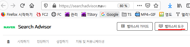 네이버에서 '네이버 웹마스터도구'를 검색하고 들어간다.