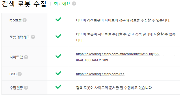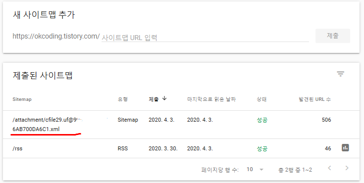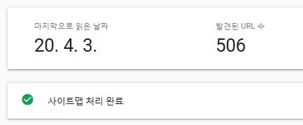 모든 작업이 끝나면 다시 한번 웹마스터도구에 들어가서 등록이 잘되었는지 확인한다.