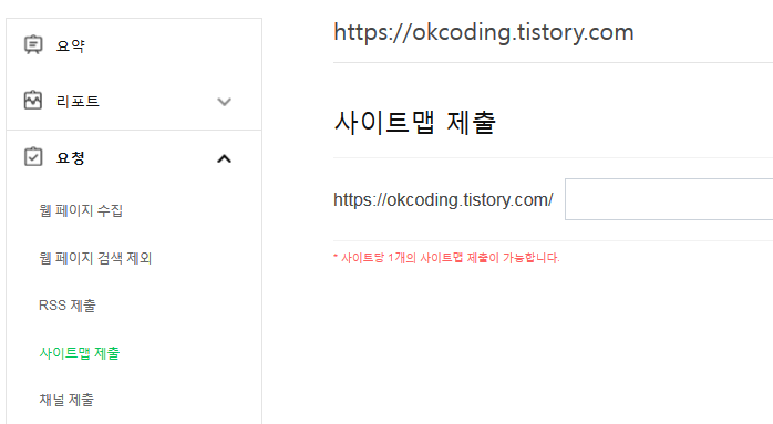 왼쪽의 '요청-사이트맵 제출'을 클릭해 들어간다.