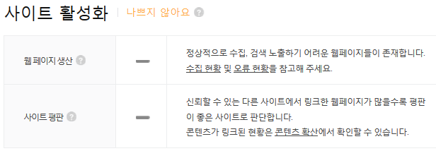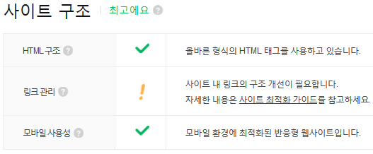 검색 로봇 수집, 콘텐츠 관리, 사이트 구조, 사이트 활성화를 본다.