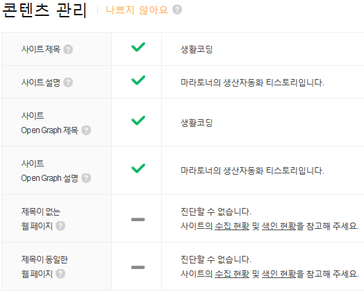 콘텐츠관리나 사이트 활성화 등은 티스토리를 잘 관리하면 점수가 높아진다.