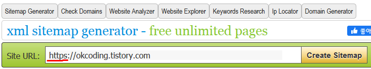 사이트 주소를 입력하고 생성을 누르면 사이트맵이 자동으로 생성된다.