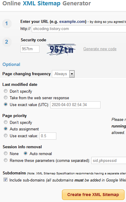 : 자동으로 사이트맵(sitemap.xml) 파일을 생성해주는 사이트이며, 위 파일은 '네이버 웹마스터도구'에 사이트맵 등록시 사용됩니다.