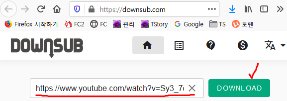 3. 아래 사이트에 가서 복사한 주소를 붙여넣기 하고 다운로드를 클릭합니다.