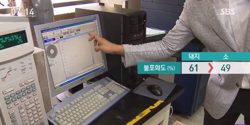 인체 온도에 녹는 불포화지방산이 돼지가 더 많음
