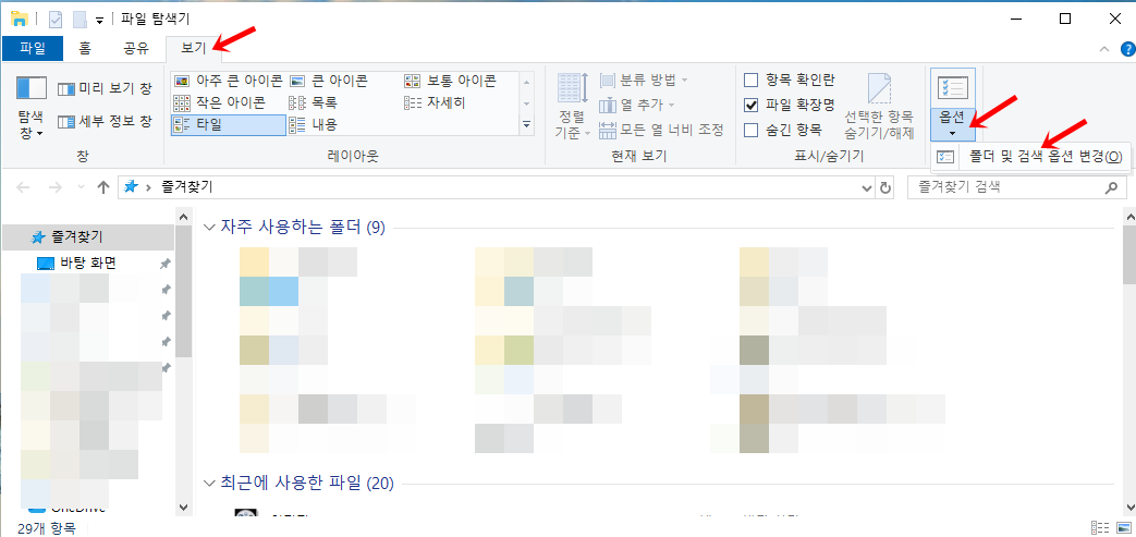 2. 보기에서 옵션-> 옵션 변경으로 들어간 후