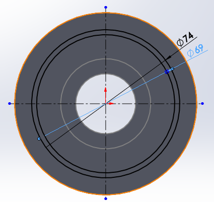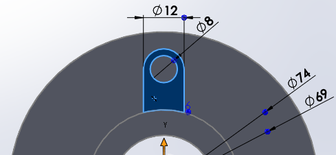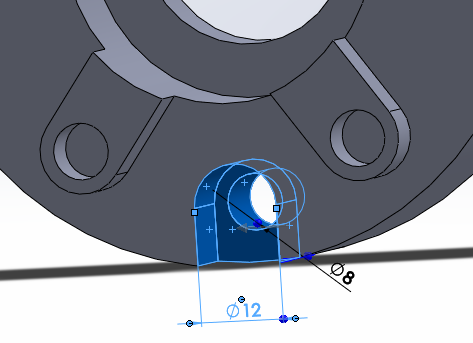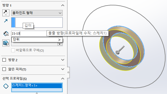 안쪽 원을 기준으로 아래와 같이 돌출될 면을 스케치 한다.
