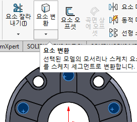 구멍 작업 할 곳을 선택하고 '요소 변환'을 시켜준다.