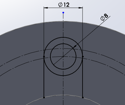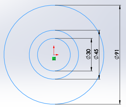돌출보스와 돌출컷의 기준이 되는 원 2개를 그려준다.