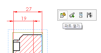단면 뷰의 외곽쪽 클릭-파트 모델링으로 들어가서 수정한다.