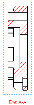 도면 변환 후 단면 뷰를 보면 두께와 구멍이 잘 관통된 모습으로 보인다.