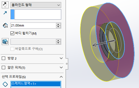 돌출-보스를 '21-15'mm만큼 아래와 같이 해준다.
