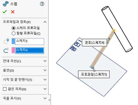 선을 먼저 클릭하고 끝점을 클릭해서 기준면을 만들어준다.