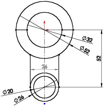 스케치 평면이 안쪽 중앙(파란색 부분)에 있기 때문에 치수 계산을 유의한다.
