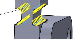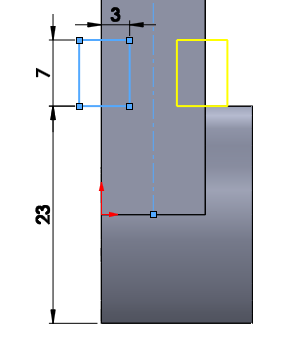 수직형상에서 아래와 같이 스케치 한 후 관통을 시켜준다.