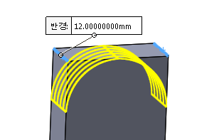 일단 위쪽 모서리에 필렛 12mm를 준다.