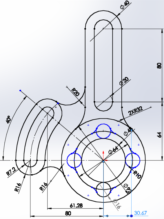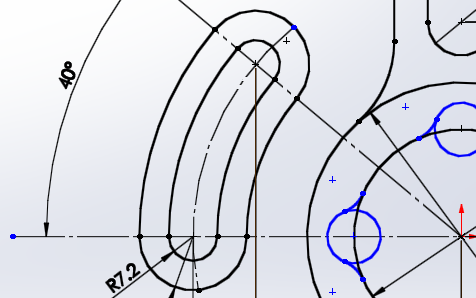 두 원을 요소복사로 해서 40도 떨어진 곳으로 복사한다.