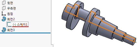 스케치 종료 후에 보조선을 기준으로 회전을 시켜준다.